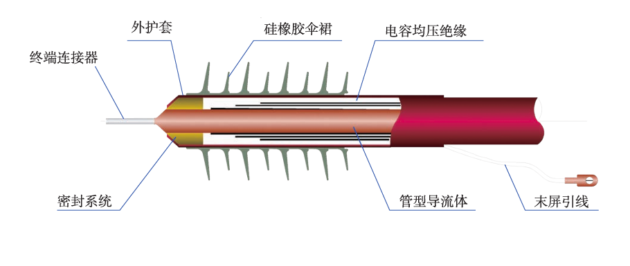 The end voltage equalization structure is derived from high-voltage electrical products, which has strong uniform electric field ability, is consistent with the main insulation process of the busbar, and can be tested one by one without additional voltage equalization scheme.